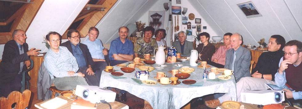 Spotkanie inaugurujące rok ak. 2003/2004 dnia 29-go września 2003r: od strony lewej: Włodzimierz Zych, Tomasz Pawlak, Wiktor Peryt, Radomir Kupczak, Jan Grabski, Wanda Dudek, Elżbieta Żuprańska, Franciszek Krok, Krystyna Wosińska, Janusz Oleniacz, Bronisław Słowiński, Przemysław Duda, Piotr Magierski. Zdjęcie wykonał Jan Pluta. |