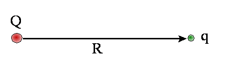 ładunkami elektrycznymi Q i q znajdującymi się w odległości R i pozostającymi w