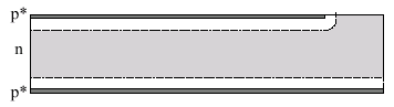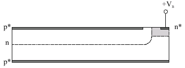 Umieśćmy złącza p - n po obydwu stronach płytki krzemu. Z obydwu stron powstaną obszary zubożone: