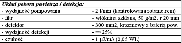 Radiometr dokonuje w ciągu 15 minut pomiaru energii potencjalnej alfa produktów rozpadu oraz koncentracji produktów rozpadu: RaA 218Po, RaB 214Pb,RaC+RaC' 214Bi+214Po. Wyniki pomiarów wyświetlane są w jednostkach µJ/m3 dla energii potencjalnej alfa i Bq/m3 dla produktów rozpadu. Ponadto wyniki zapisywane są w pamięci operacyjnej mikroprocesora. Mogą być przesłane do komputera typu PC lub drukarki za pośrednictwem portu szeregowego RS232C.