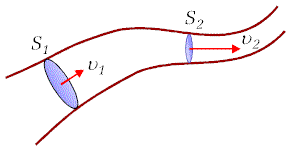 Związek ten, wyrażony tu na dwa sposoby, nosi nazwę równania ciągłości. Widać z niego, że prędkości cieczy w strudze są odwrotnie proporcjonalne do przekrojów strugi.