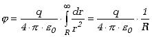 Jako przykład wyznaczmy pojemność kuli o promieniu R. W tym celu przyjmijmy, że kula ta naładowana jest ładunkiem q oraz, że nie jest pod działaniem zewnętrznego pola elektrycznego. Potencjał kuli wyznaczymy zgodnie ze wzorem (8.3.22) wykonując całkowanie w granicach od punktu na powierzchni kuli do nieskończoności, gdzie potencjał równy jest zeru. Pamiętamy, że natężenie pola od naładowanej kuli wyrażone jest wzorem (8.4.10).