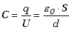 Stąd zgodnie z definicją pojemności kondensatora (8.6.5) otrzymujemy wzór na pojemność kondensatora płaskiego