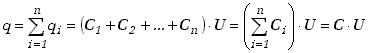 Całkowity ładunek jest sumą ładunków zgromadzonych na wszystkich kondensatorach, czyli