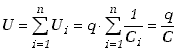 | Rys.8.6.3. Układ kondensatorów połączonych szeregowo |